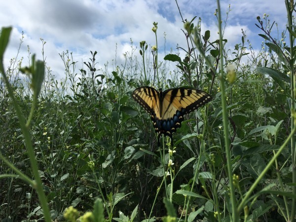 Carinata provides floral resources to native pollinators, such as butterflies, increasing biodiversity, according to South Dakota State University study led by Professor Charles B Fenster. (Photo by Charles Fenster)