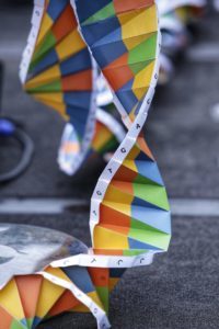 The double-helix ribbon, created by local high school students. (Kelly Owen/Berkeley Lab)