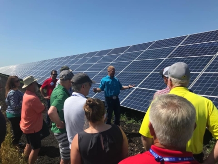 Eric and Sandra Dyck of 4D Farms hosted the field tour. They spoke about their use of leaf cutter bees for pollination of alfalfa fields, state-of-the-art egg farm, and solar power array that powers 4D Farms and puts energy back into the grid.