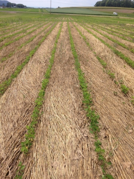 This photo shows a tilled and cultivated organic soybean system. The study is the latest in a 15-year-long line of organic no-till research conducted in the College of Agricultural Sciences led by William Curran, professor emeritus of weed science.