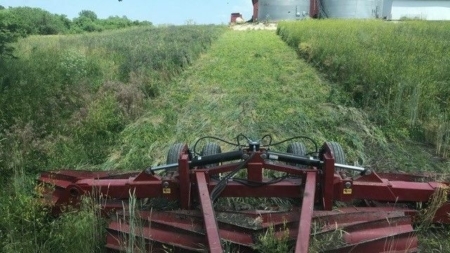 “It doesn’t do as good of a job as the I & J roller crimper, but it is much more cost-effective to rent and is effective at knocking cereal rye over,” he says.